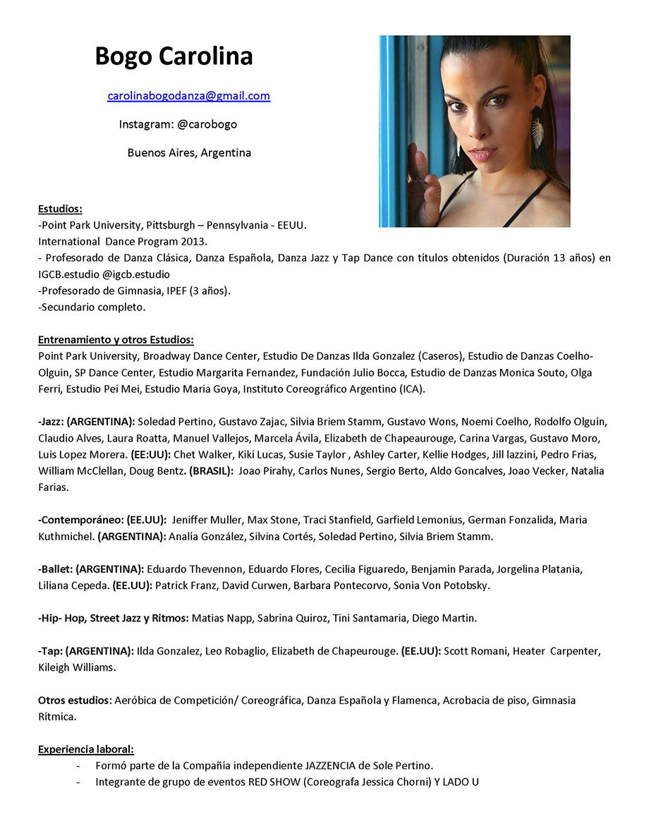 Juan Manuel de Rosas 2909 Caseros - Buenos Aires Movil: 154159-4752 Email: carolinabogodanza@gmail.com